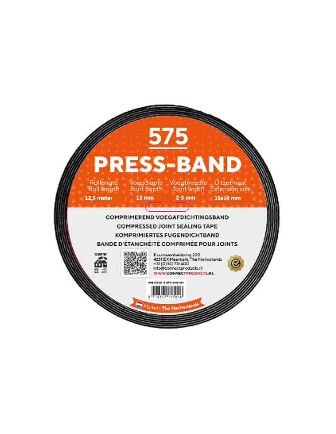 Seal-it 575 PRESS-BAND is een hoogwaardig, voorgecomprimeerd en geïmpregneerd voegafdichtingsband van open-cellig polyurethaanschuim. Dankzij de gecontroleerde expansie, hoge elasticiteit en KOMO/BG1-certificering vormt dit band een duurzame, slagregendichte en professionele afdichting voor voegen in gevel- en kozijnconstructies. Ideaal voor zowel nieuwbouw als renovatie.