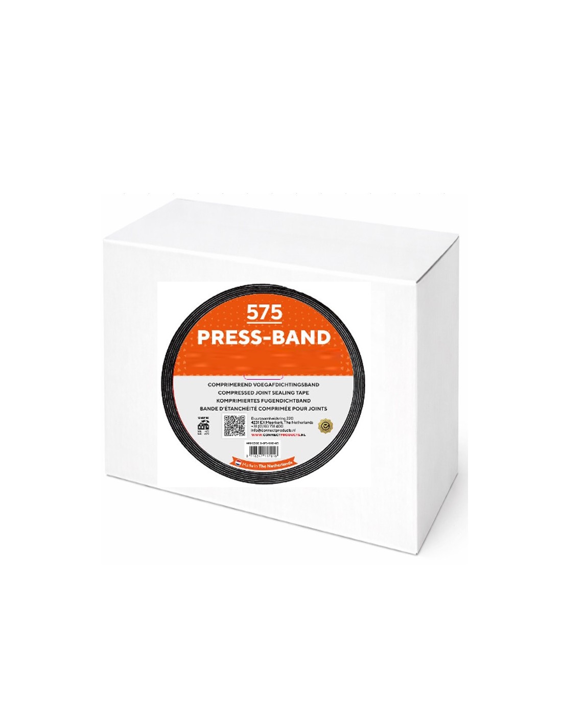 Professioneel BG1-, KOMO- en brandvertragend (M1) gecertificeerd compriband voor duurzame afdichting van gevel- en kozijnvoegen. Seal-it 575 PRESS-BAND is een voorgecomprimeerd en geïmpregneerd voegafdichtingsband van open-cellig polyurethaanschuim dat na plaatsing gecontroleerd expandeert en zo een slagregendichte, winddichte en dampopen afdichting vormt.