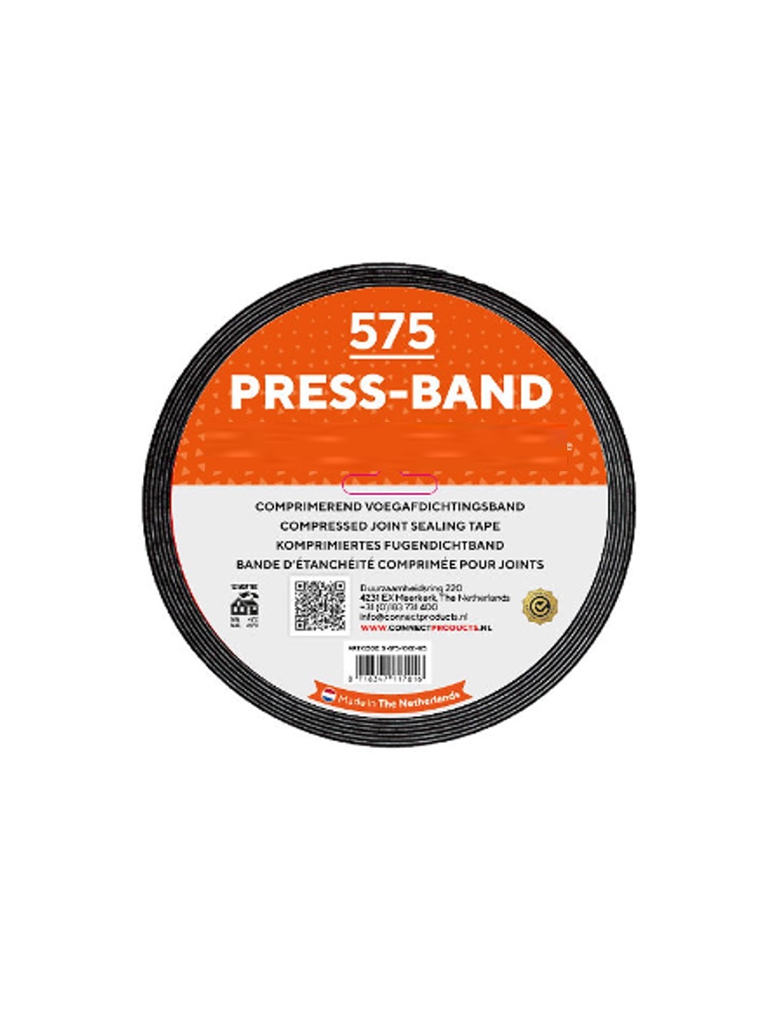Professioneel BG1-, KOMO- en brandvertragend (M1) gecertificeerd compriband voor duurzame afdichting van gevel- en kozijnvoegen. Seal-it 575 PRESS-BAND is een voorgecomprimeerd en geïmpregneerd voegafdichtingsband van open-cellig polyurethaanschuim dat na plaatsing gecontroleerd expandeert en zo een slagregendichte, winddichte en dampopen afdichting vormt.